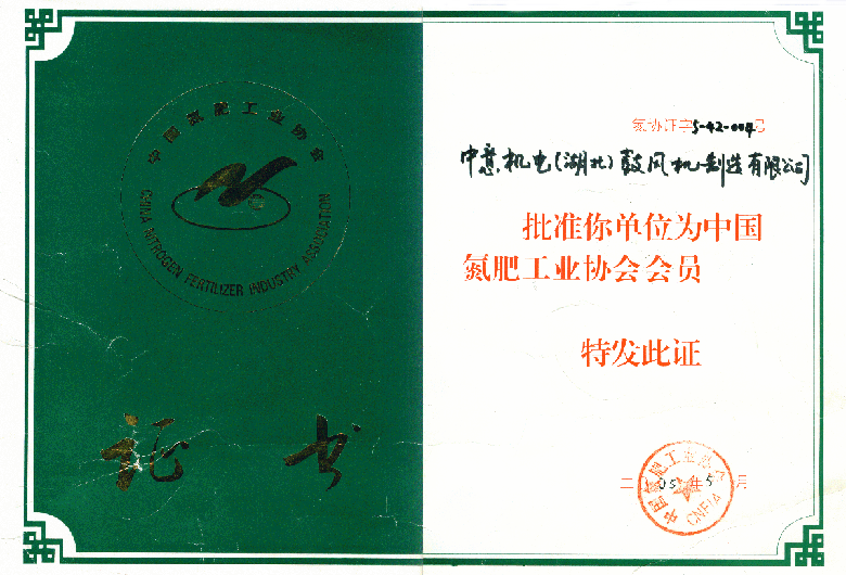 Member Certificate of China Nitrogenous Fertilizer Industry
